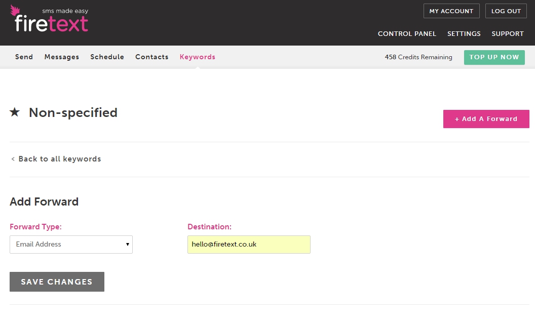 Here you can either select EMAIL ADDRESS, MOBILE NUMBER, or HTTP POST (depending on where you want to forward your message)